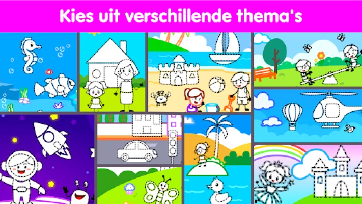 Ontdek een wereld van creativiteit voor kinderen! Deze app laat kleintjes op een leuke en interactieve manier diverse tekenpagina's overtrekken en inkleuren. Stimuleer de fijne motoriek en artistieke expressie met urenlang educatief plezier. Perfect voor jonge kunstenaars in de dop!