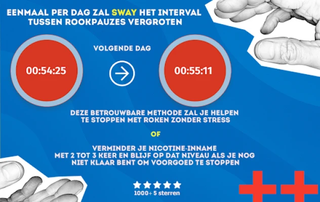 SWay helpt je dagelijks bij het stoppen met roken. De app verlengt gelijkmatig de tijd tussen je rookpauzes, waardoor je geleidelijk minder rookt. Zo ondersteunt SWay je effectief op weg naar een rookvrij leven, stap voor stap en zonder abrupte veranderingen.
