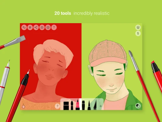 Ontdek een arsenaal aan meer dan twintig ultrarealistische tekengereedschappen, elk minutieus ontworpen om te reageren op de druk, hoek en breedte van je bewegingen, net als bij fysieke materialen. Van de vloeiende lijnen van een Rotringpen tot de rijkdom van oliepasta en de unieke spreiding van een nat aquarelpenseel – de expressiemogelijkheden zijn grenzeloos. Verbeter je workflow met krachtige lagenfuncties, importeer foto's als inspiratie of basis, en verfijn elke tint met de nauwkeurige kleurpipet. Bovendien biedt een geavanceerde penseelbewerker de vrijheid om je tools volledig te personaliseren, terwijl stylusondersteuning zorgt voor een ongeëvenaarde precisie. Voor het delen van je creaties staan geavanceerde exportopties tot je beschikking, waardoor je jouw meesterwerken eenvoudig presenteert.