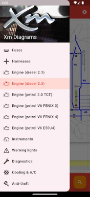 Ontdek uitgebreide automotieve informatie voor uw Citroën Xm met Xm Diagrams. Deze app biedt gedetailleerde schematische diagrammen, bedradingslay-outs, motor- en vloeistofgegevens. Foutcodes uitlezen, onderdelen zoeken, ORGA berekenen en zelfs exterieurkleuren bekijken is eenvoudig. Perfect voor onderhoud en reparatie. Afdrukondersteuning voor schema's inbegrepen.