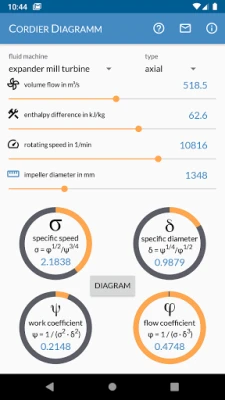 Cordier Diagram is uw essentiële tool voor turbomachinerieontwerp. Bepaal snel het type (axiaal, diagonaal, radiaal) van compressoren, pompen, ventilatoren, turbines of molens. Bereken diameters op basis van volumestroom, specifieke enthalpie en snelheid, of voer omgekeerde berekeningen uit voor volumestroom en snelheid bij een gegeven geometrie.
