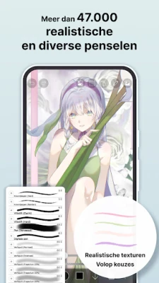 Ontdek een rijkdom aan creatieve mogelijkheden met ibis Paint's uitgebreide toolset. Met meer dan 47.000 unieke penseeltypes, variërend van klassieke DIP-pennen en viltstiften tot gespecialiseerde luchtborstels, olieborstels en houtskool, vindt u altijd de perfecte tool voor uw meesterwerk. Ervaar de precisie van tekenen met een indrukwekkende snelheid van 60 frames per seconde, wat zorgt voor een ongekend realistische en vloeiende lijnvoering. Beheers complexe composities met onbeperkte lagen, elk configureerbaar met individuele parameters zoals dekking, mengmodi en een handige clipping-functie, waardoor u de volledige controle heeft over elk detail van uw kunstwerk.
