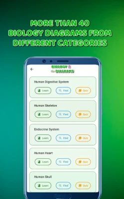 Learn Biology Diagrams ontsluit de kracht van visueel leren. Deze app is uw ultieme hulpmiddel om complexe biologische concepten te doorgronden via interactieve diagrammen en illustraties. Perfect voor studenten, docenten en liefhebbers, biedt Learn Biology Diagrams een uitgebreide bibliotheek van hoogwaardige biologische afbeeldingen.