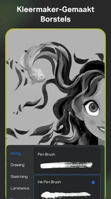 Naast de geavanceerde AI-integratie, biedt SketchPro een robuuste set traditionele tekengereedschappen die voldoen aan de hoogste professionele eisen. Experimenteer met een uitgebreide collectie aanpasbare penselen, variërend van schets- tot schilderapplicaties, inclusief een gratis rolborstel met meer dan honderd patronen, en sla uw favorieten op voor snelle toegang. Werk met onbeperkte lagen, beheer ze flexibel met functies zoals dupliceren, samenvoegen en vergrendelen. Verfijn uw ontwerpen met slimme vormen, een precieze symmetrietool, diverse gradiëntopties en geassisteerd tekenen. Een volledig aanpasbaar kleurenwiel, de mogelijkheid om paletten te creëren of te importeren, en een rijke bibliotheek met vormen en symbolen bieden onbeperkte mogelijkheden. Bovendien zorgen automatische opslag, cloud-synchronisatie, projectbeheer en een time-lapse functie ervoor dat uw creaties altijd veilig en toegankelijk zijn, gepresenteerd in een comfortabele donkere modus.