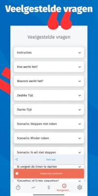 Deze tool is er voor iedereen, ongeacht uw ambitie. Wilt u een niet-roker worden? Een traject van 100-200 dagen biedt de beste kans op blijvend succes, door het risico op terugval te minimaliseren. Wilt u minder roken? Verlaag uw verbruik geleidelijk en bespaar jaarlijks duizenden euro's, terwijl u uw gezondheid aanzienlijk verbetert. Zelfs als u nog niet klaar bent om te stoppen, maar meer controle wilt, kan de app u helpen. Door een langere periode in te stellen (bijvoorbeeld 365+ dagen), vermindert u ongemerkt uw afhankelijkheid en doorbreekt u onbewuste triggers. De timer herinnert u eraan hoeveel tijd resteert tot de volgende sigaret, waardoor alledaagse situaties zoals na het eten of wachten op de bus, niet langer automatisch leiden tot een rookpauze. Word de meester van uw gewoonte en ervaar de voordelen van een gezonder, vrijer leven.